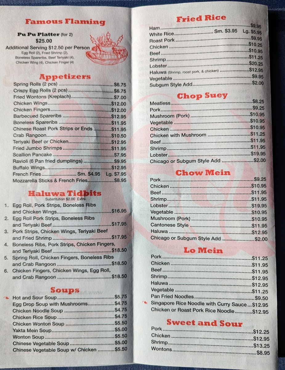 Haluwa Chinese Restaurant Menu