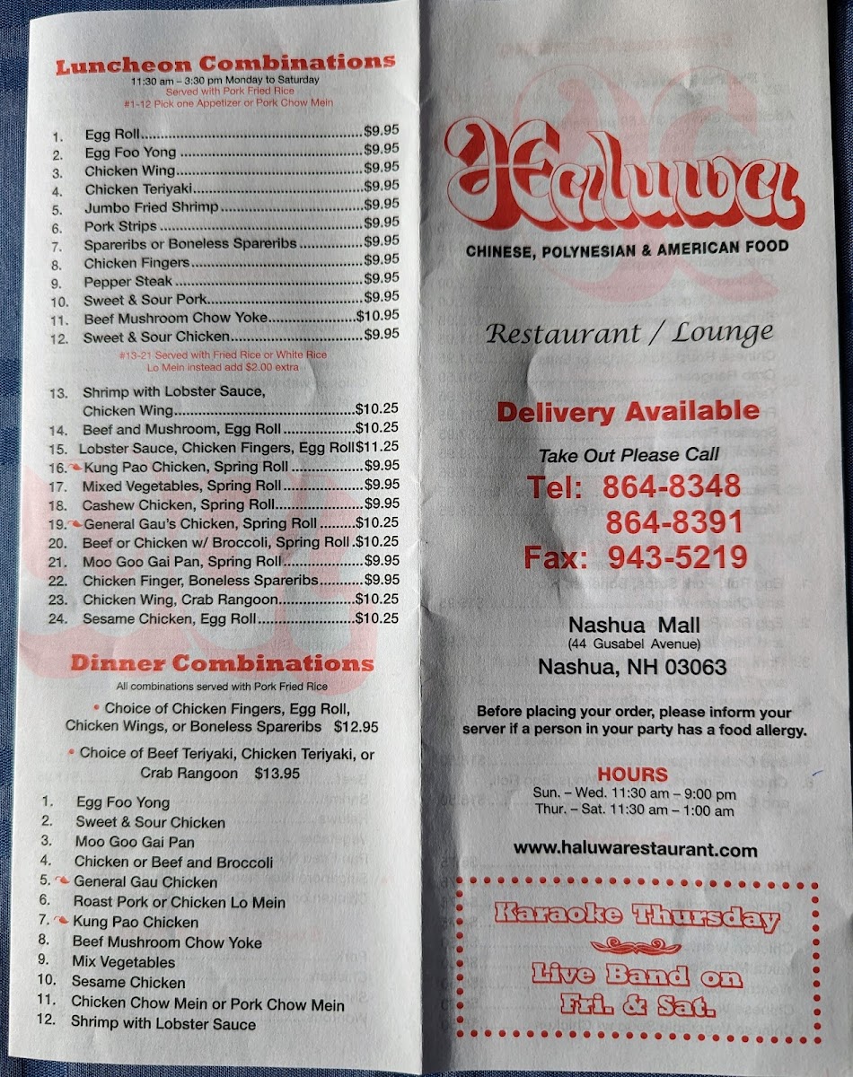 The menu at Haluwa Chinese Restaurant offers a welcoming variety of classic Chinese dishes, balancing familiar flavors with comforting choices that suit both casual meals and more relaxed dining occasions. Whether you're stopping by for a midday bite or settling in for a convivial evening, the offerings provide something approachable and satisfying.