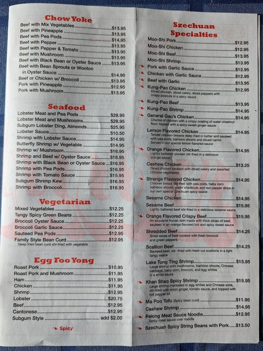 Guests often enjoy sharing plates like the Pu Pu Platter for two, a great way to sample a range of flavors together in a relaxed setting. Popular dishes such as Hot and Sour Chicken Fried Rice and Sesame Chicken fit seamlessly with the warm, unassuming atmosphere, perfect for unwinding with friends or family. The menu thoughtfully includes a range of vegetarian options, from Tangy Spicy Green Beans to Family Style Bean Curd, ensuring variety for different preferences.